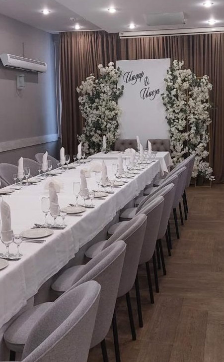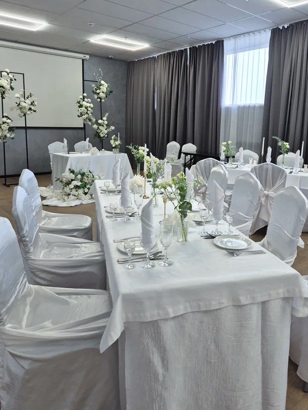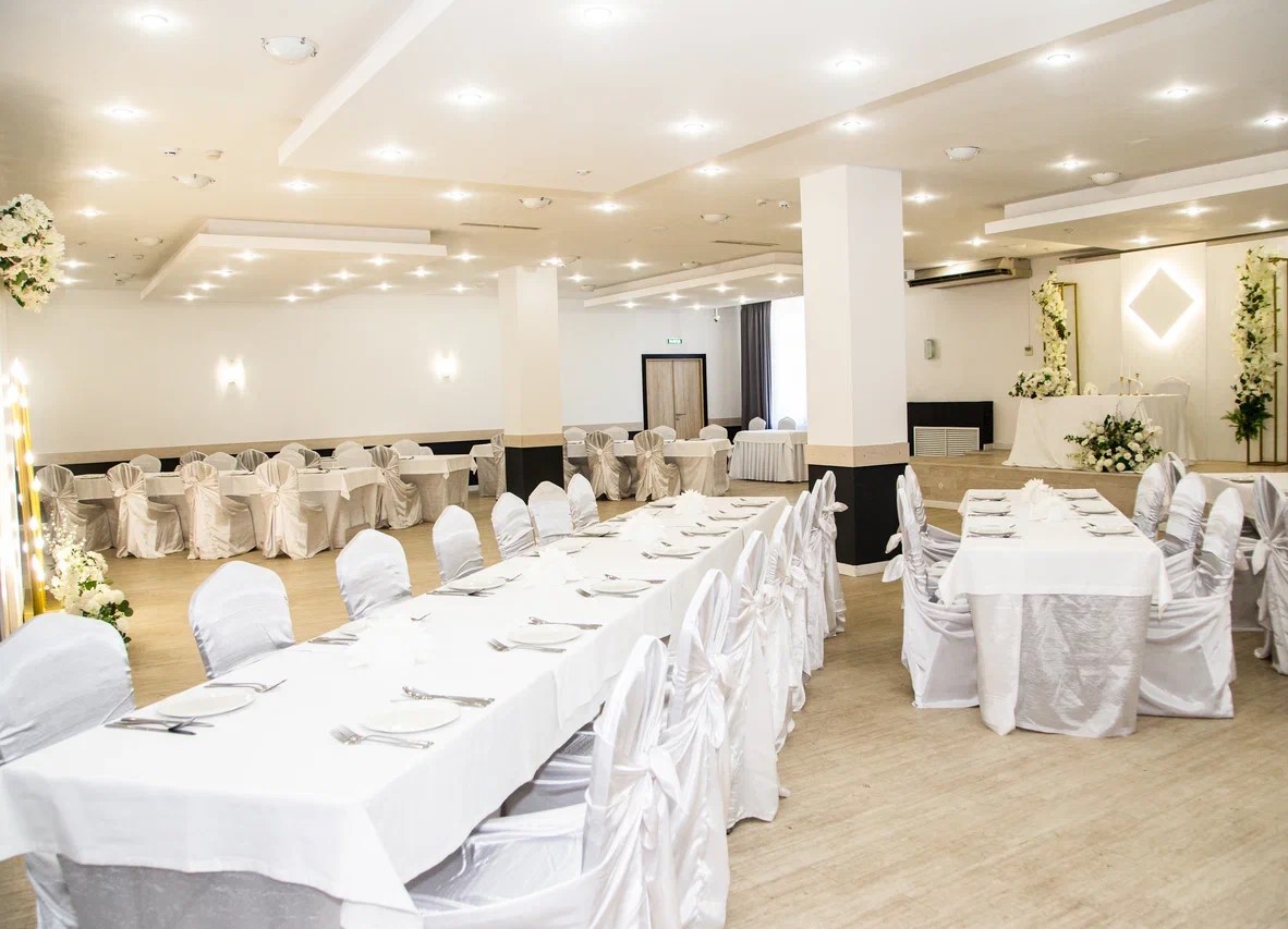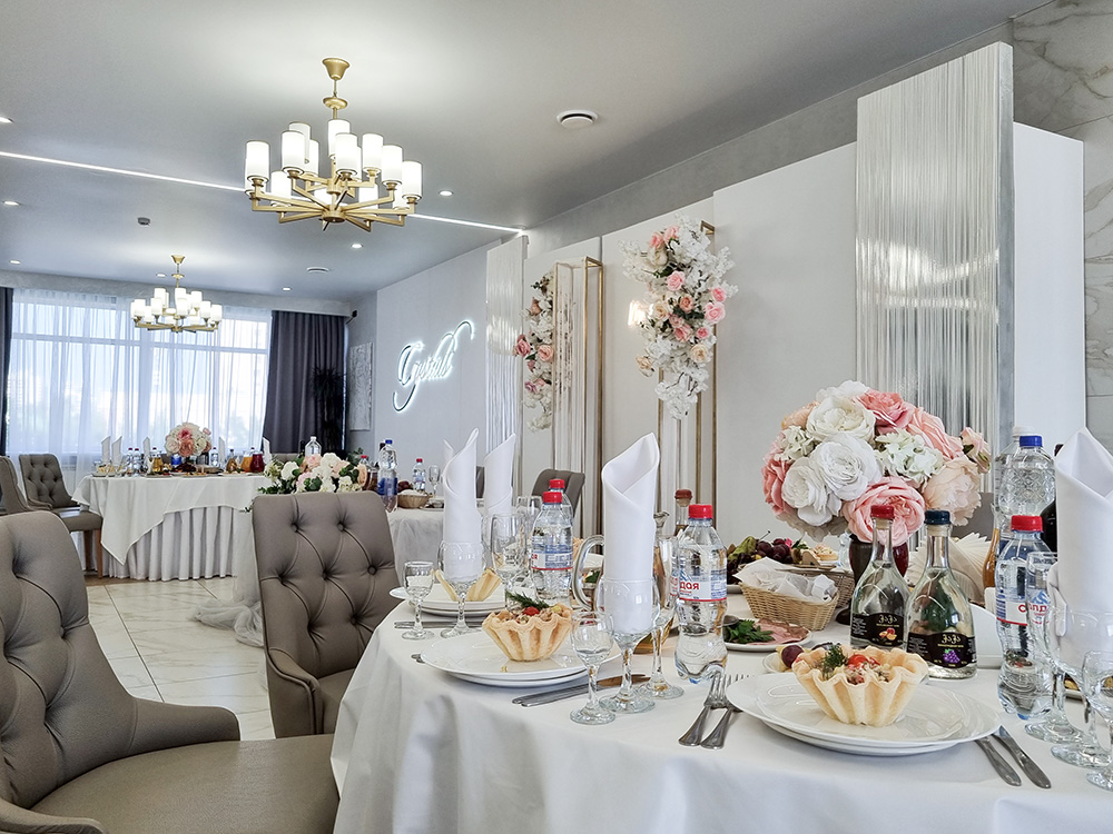 Мы предлагаем полный спектр услуг: базовое оформление зала, бесплатный номер для молодоженов, приветственная велком зона с фуршетом.